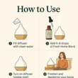 Add 4–6 drops to your diffuser or humidifier filled with clean water.